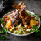 Grilled lamb cutlets, pomegranate glaze, butternut squash